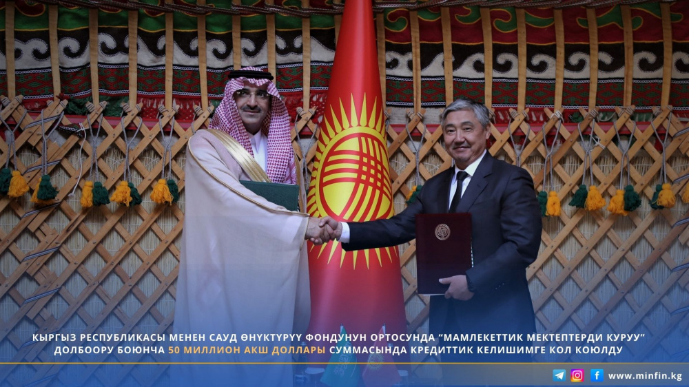 В ходе встречи подписано кредитное соглашение между Кыргызской Республикой и Саудовским фондом развития по проекту "Строительство государственных школ, фаза 2" на сумму $50 млн.