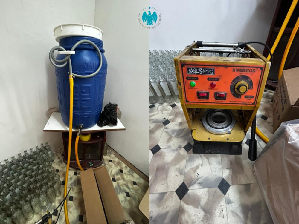 Как уточняется, в ходе проверки помещения цеха, расположенного в жилмассиве "Арча-Бешик", обнаружены 122 единицы поддельной алкогольной продукции, а также 2 180 акцизных марок сомнительного происхождения, 110 литров жидкости со специфическим запахом спирта, самодельное оборудование для розлива, этикетки и стеклянная тара от алкогольной продукции различных наименований.