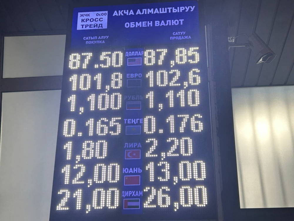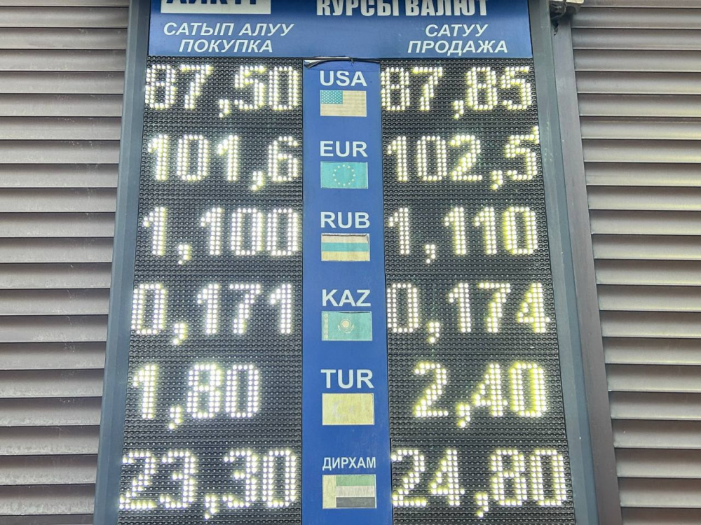 Курс доллара немного подрос: покупка - по 87,55 сома, продажа - по 87,85.